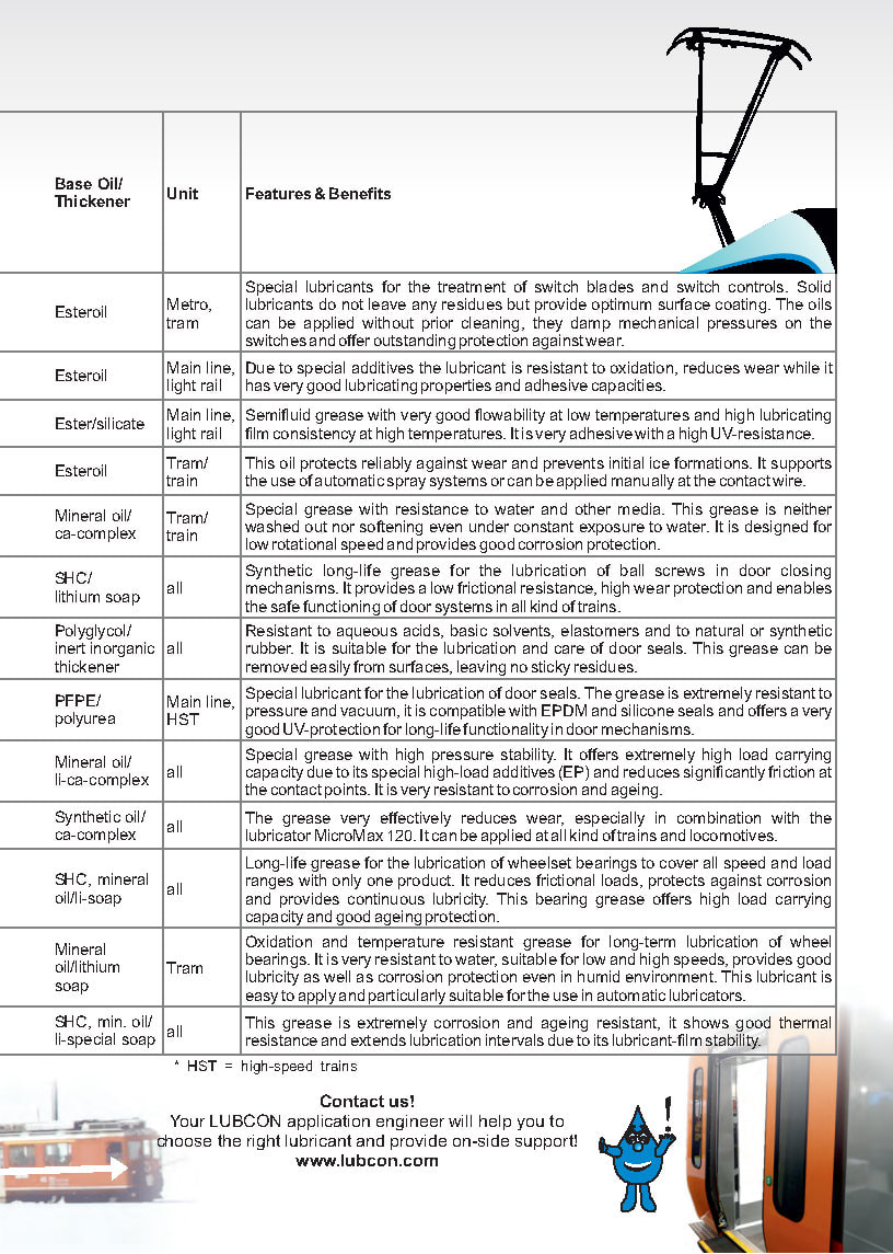 Lubcon Special Lubricants for Train, Rail and Wheel